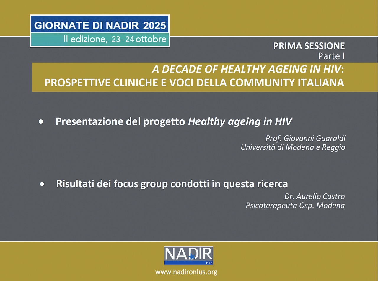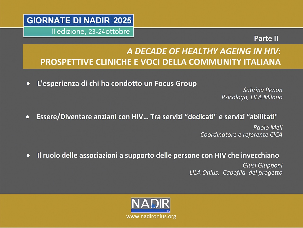 Giornate di Nadir giovedì 20 e venerdì 21 ci porterà i commenti di altri esperti sui temi di Salute mentale, LA iniettabili, quadro legislativo, terapia ottimale per me, tumori in epoca ART.